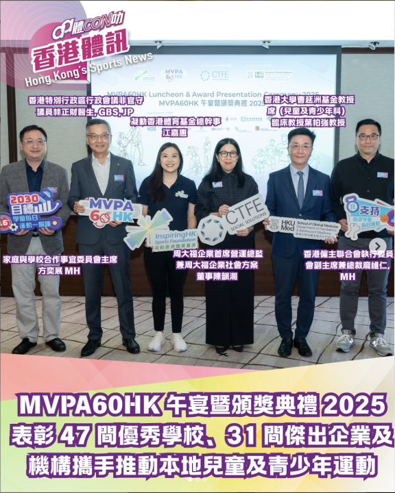 MVPA60HK 午宴暨頒獎典禮 2025 表彰 47 間優秀學校、31 間傑出企業及機構攜手推動本地兒童及青少年運動11/09/2025 aasportsconnect -Hong Kong’s Sports News
