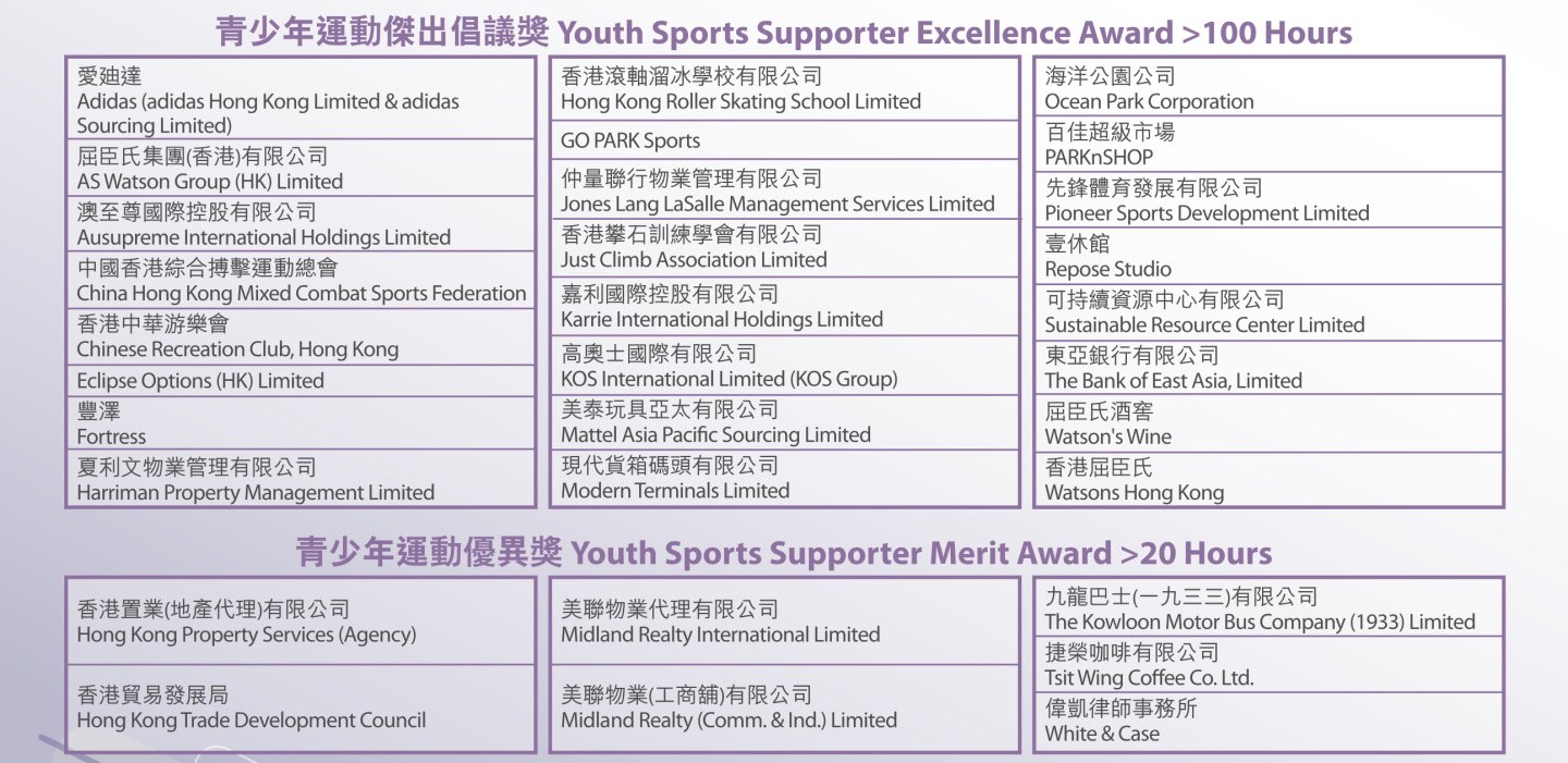 Pledged companies were recognised through three award categories: the “Youth Sports Supporter Merit Award”, the “Youth Sports Supporter Excellence Award”, and the “Best Practice Showcase Award”. Over 30 companies and organisations were honoured this year, with 7 of them receiving the “Best Practice Showcase Award”. Recipients will also receive the “SportsHour Company” logo, highlighting their efforts and achievements in promoting an active lifestyle among local children and youth.